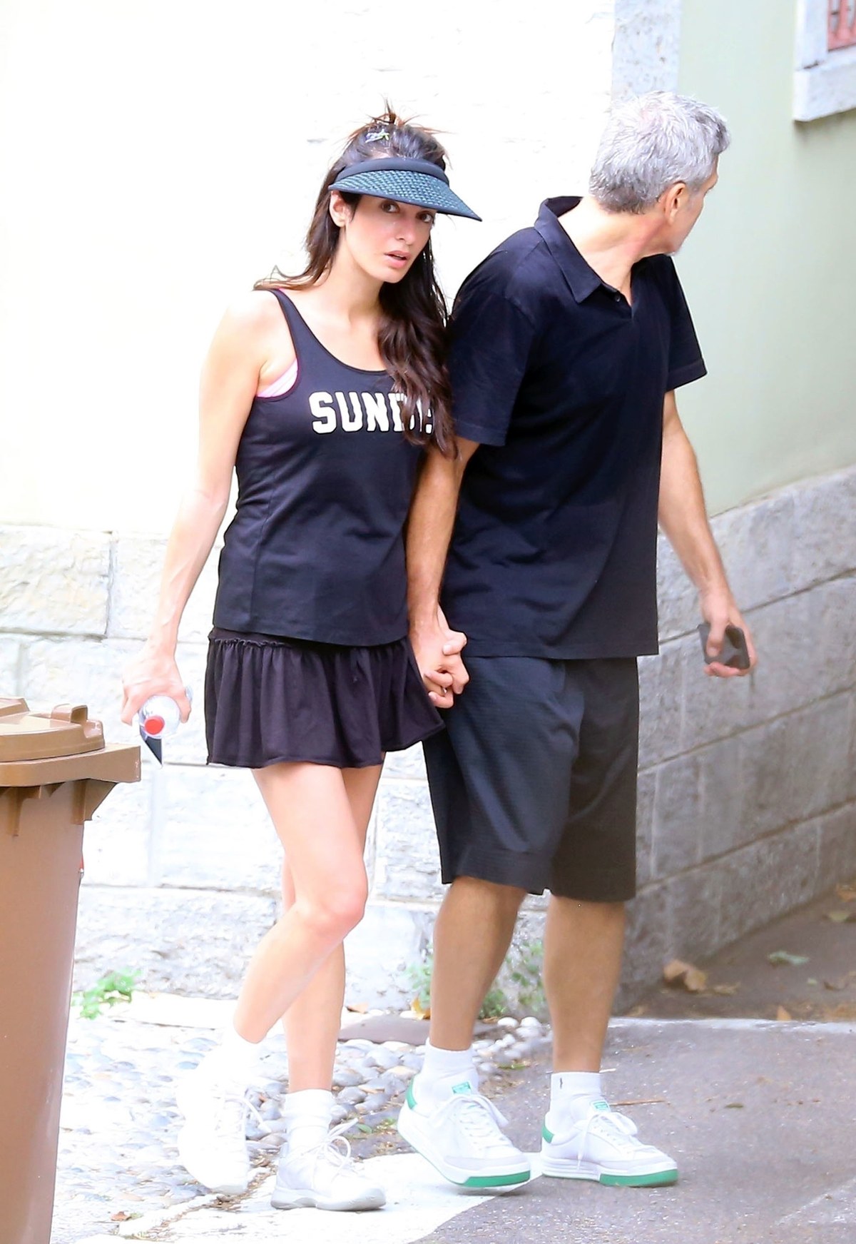 Amal and George Clooney have been spotted after tennis playing in Italy in matching outfits.