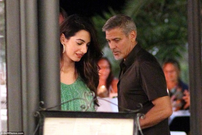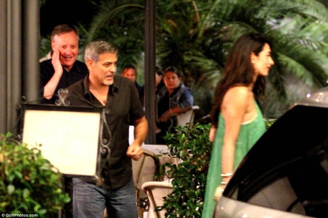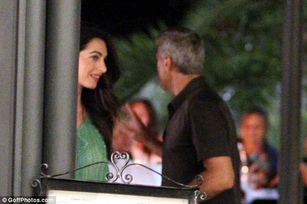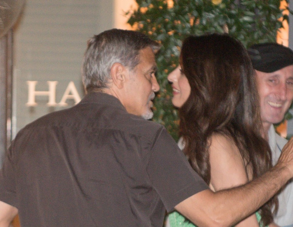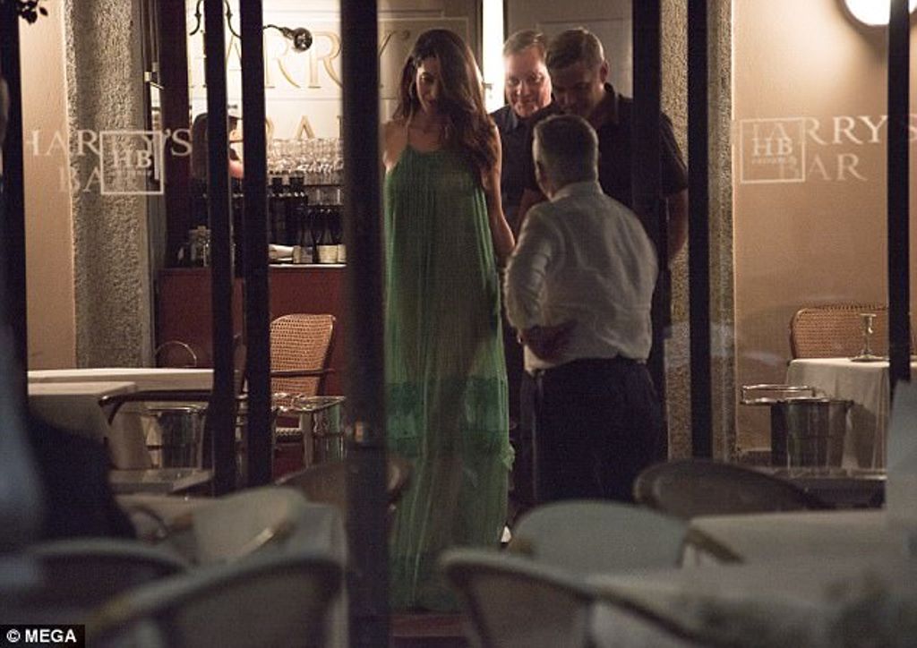 Amal and George Clooney have been spotted leaving with friends Harry’s Bar in Cernobbio, Italy.