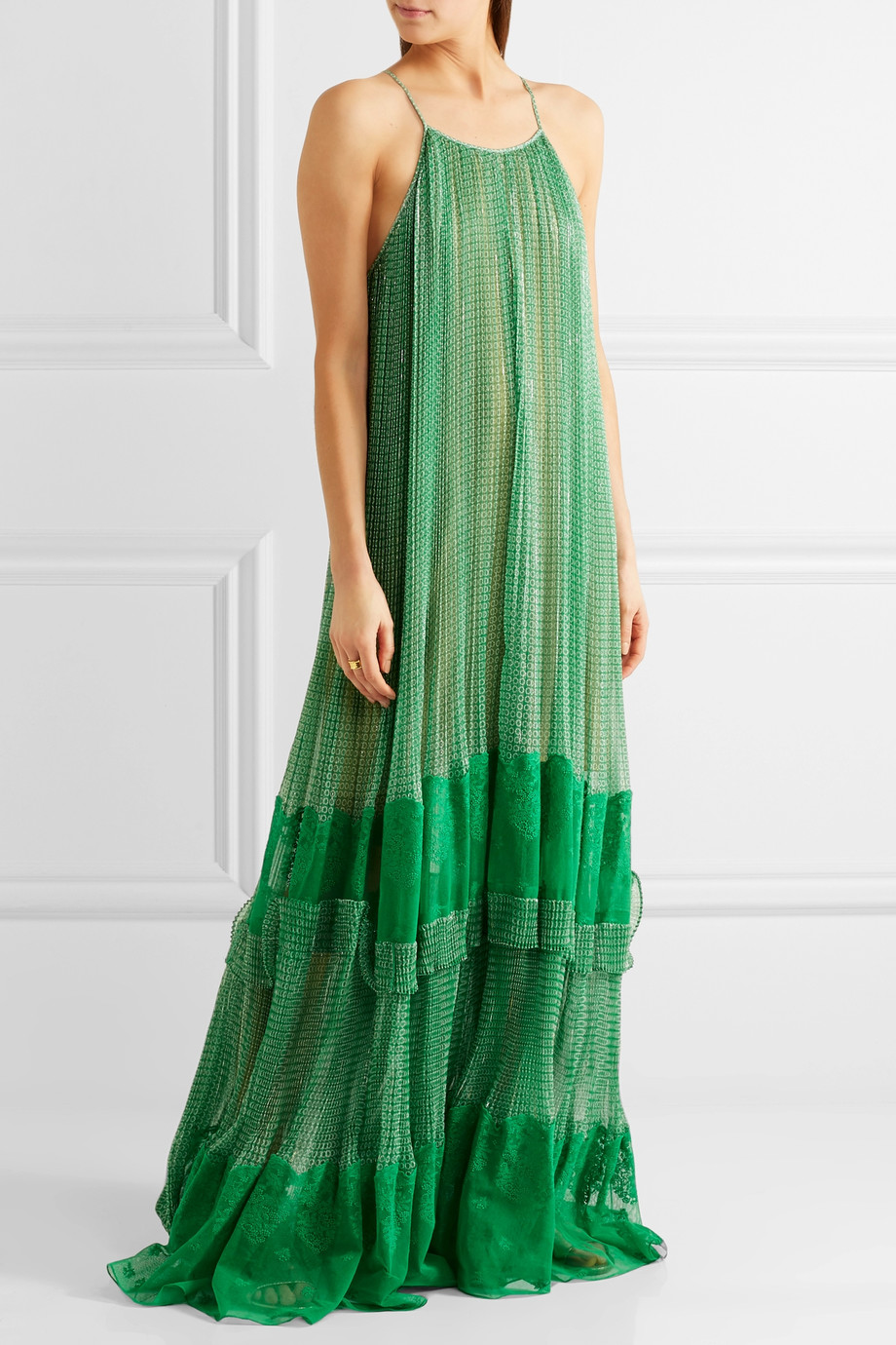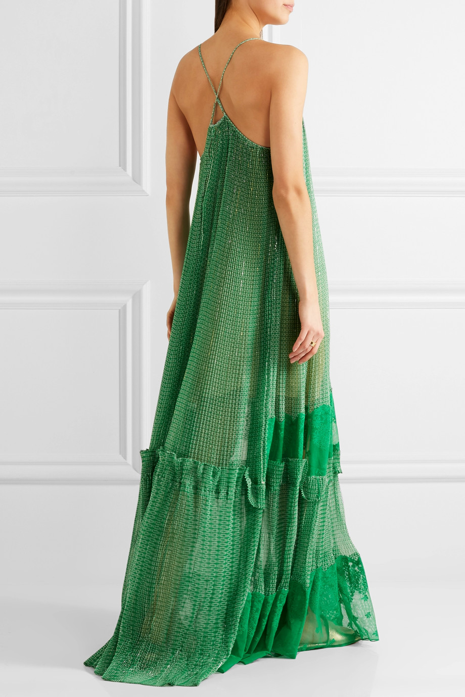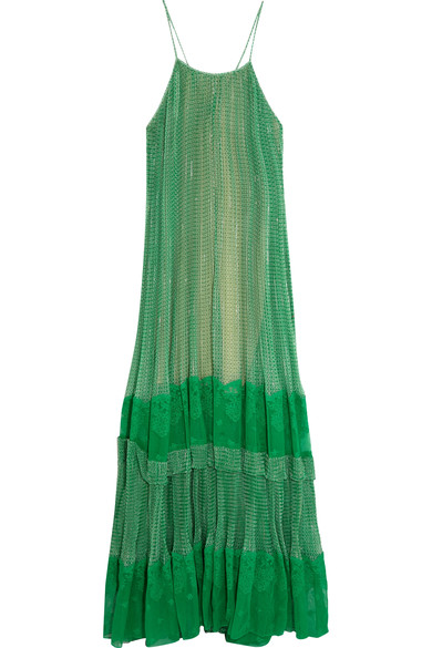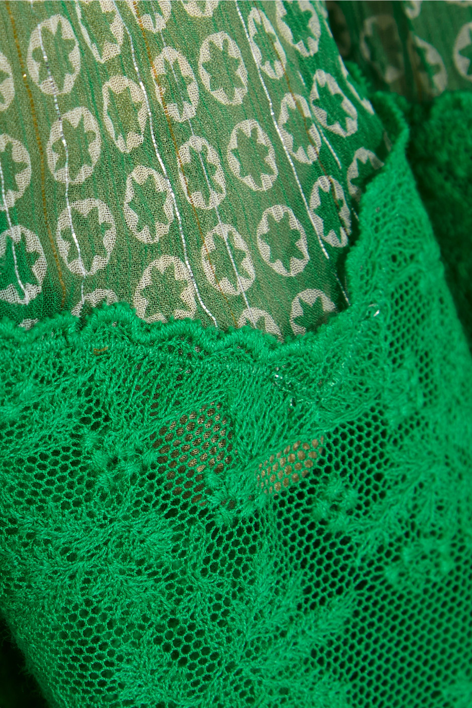 Lace paneled printed silk blend georgette gown