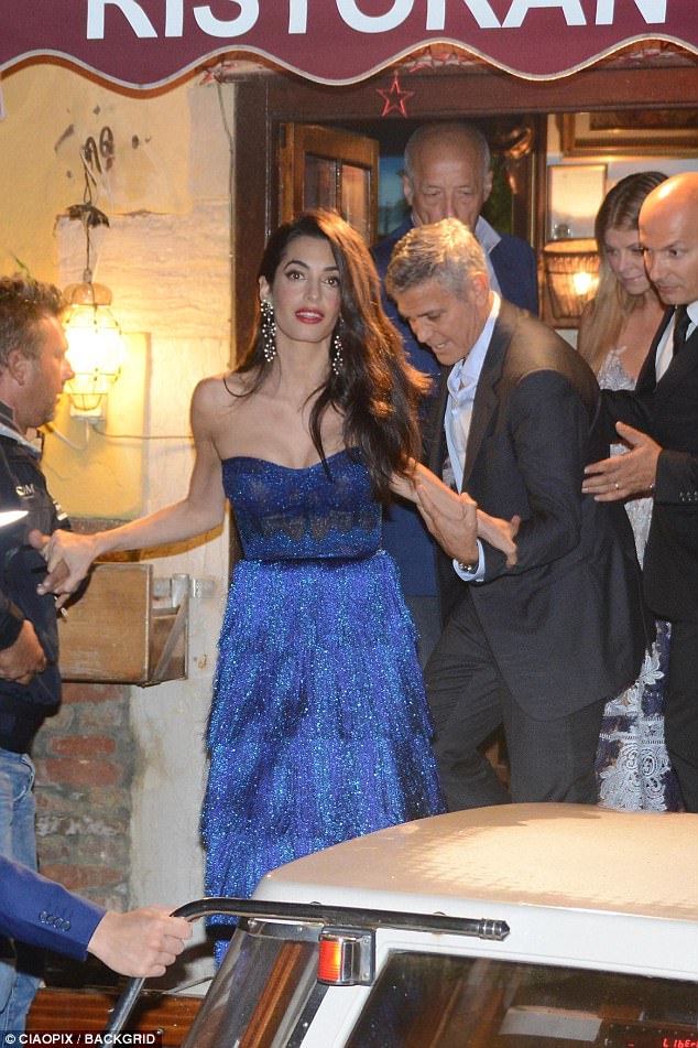 Amal and George were joined by Grant and Lysa Heslov as they enjoyed a bite to eat at Da Ivo restaurant after attending a private event as part of the Venice Film Festival.