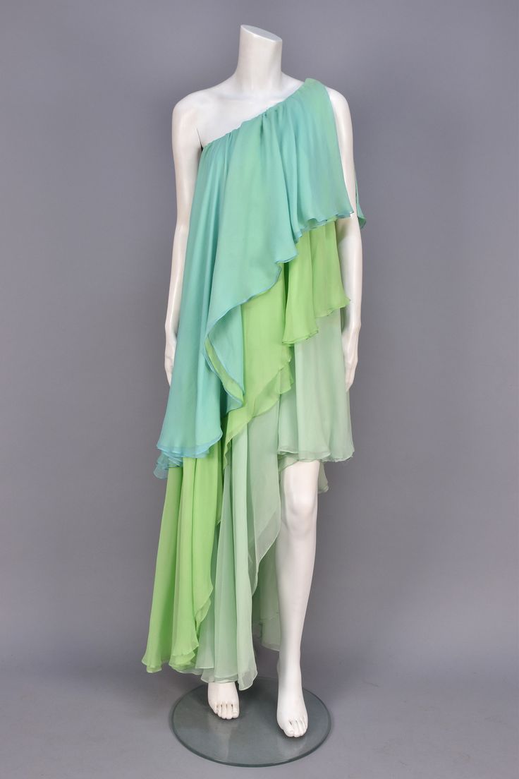 I don’t like the ruffled, one shoulder style or colour of this dress. I appreciate the vintage aspect but it’s just a 70s frock gone wrong in my eye. Love the shoes though.