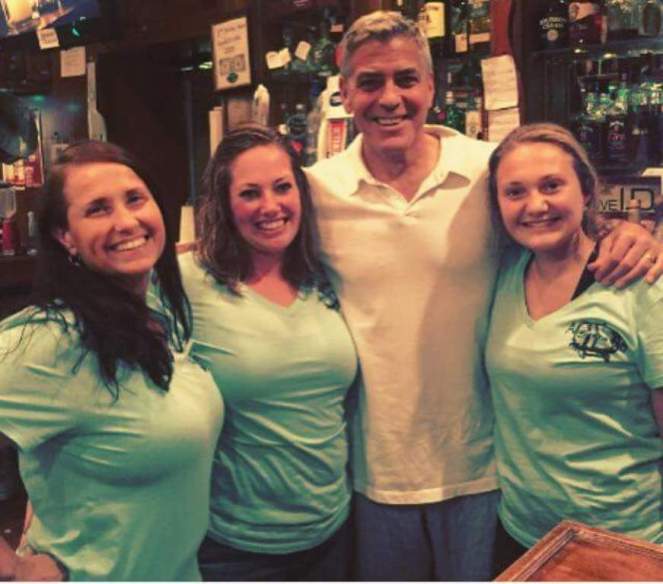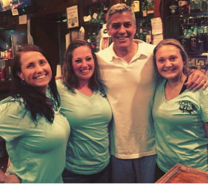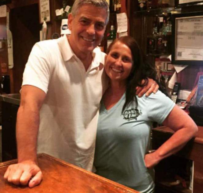 In the background you can see George Clooney’s older sister, Adelia Zeidler with a Casamigos t-shirt.