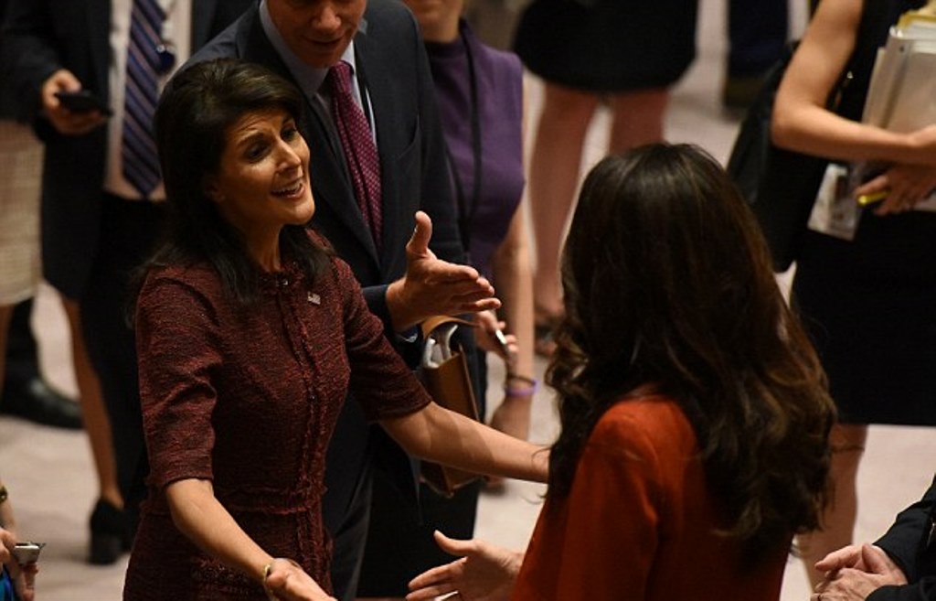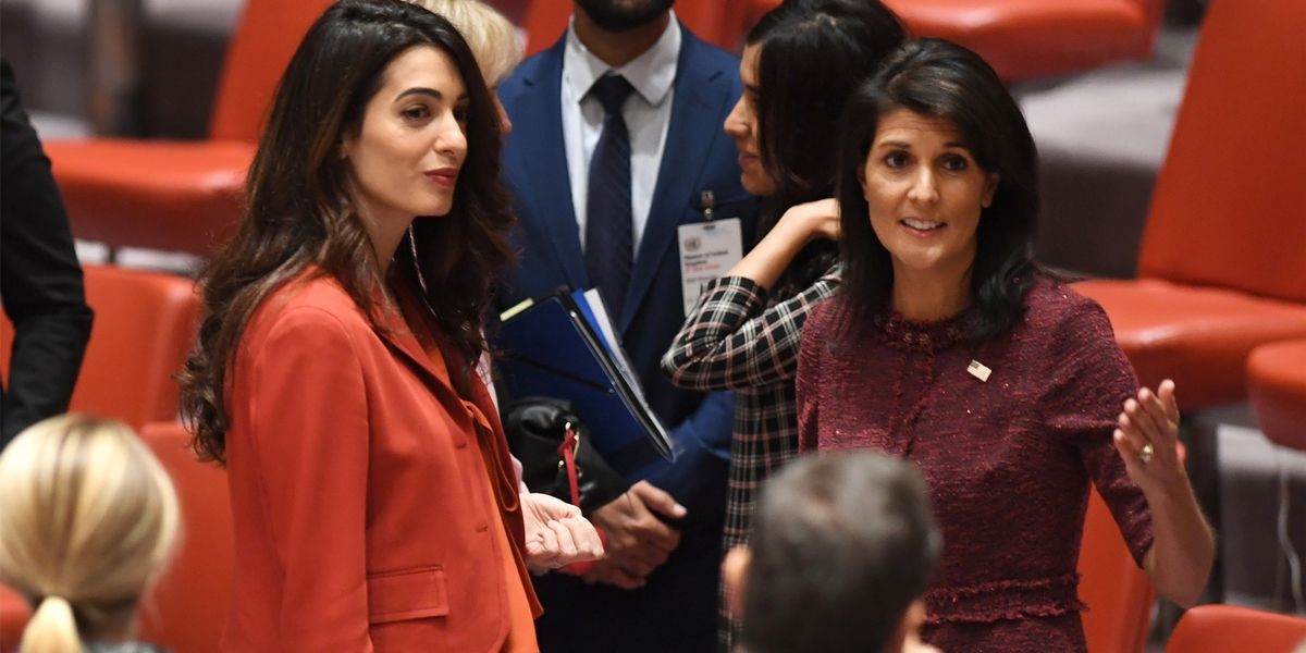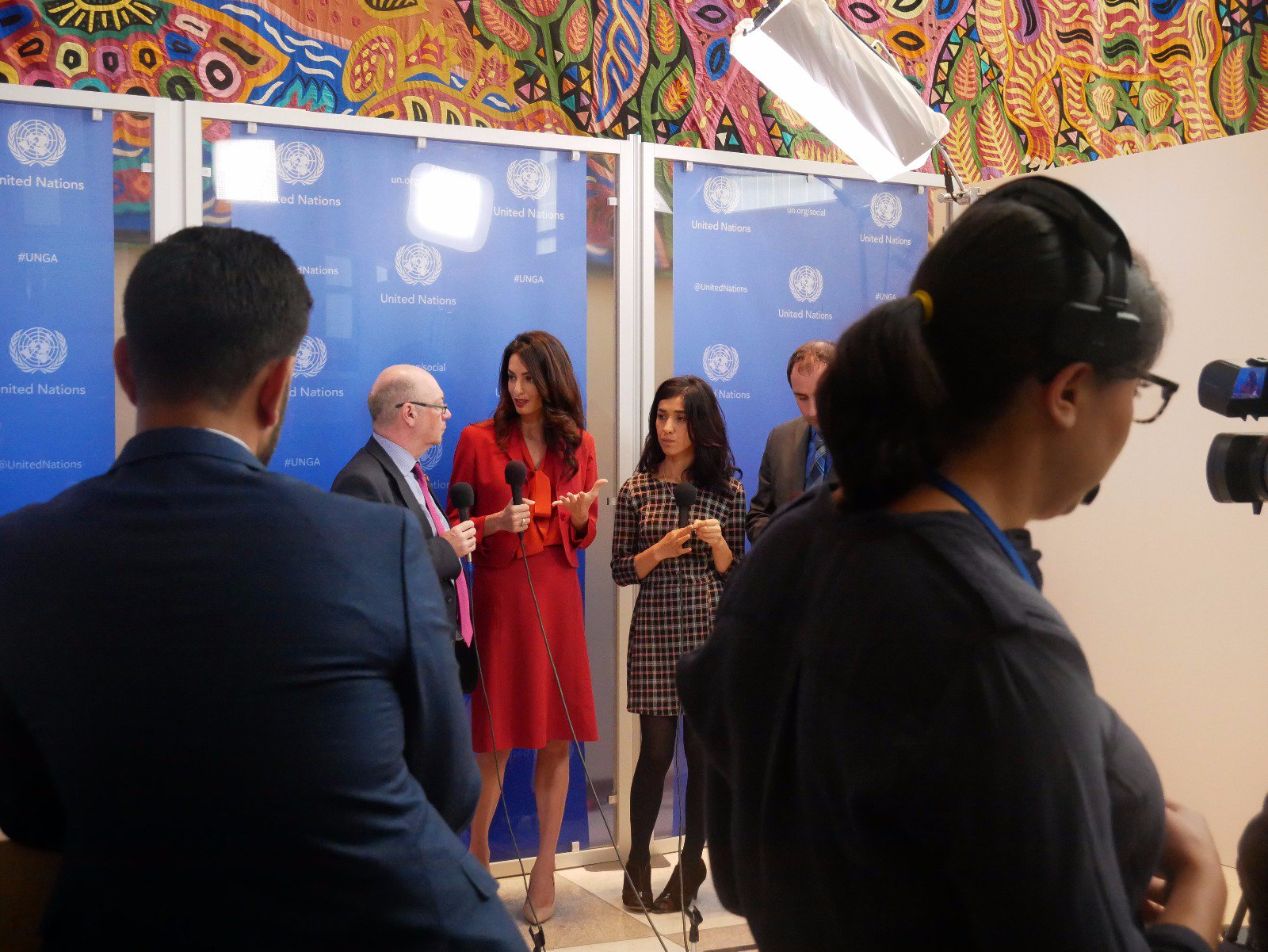 50 thoughts on “Amal Clooney and Nadia Murad at the United Nations Security Council Chamber 21.09.2017