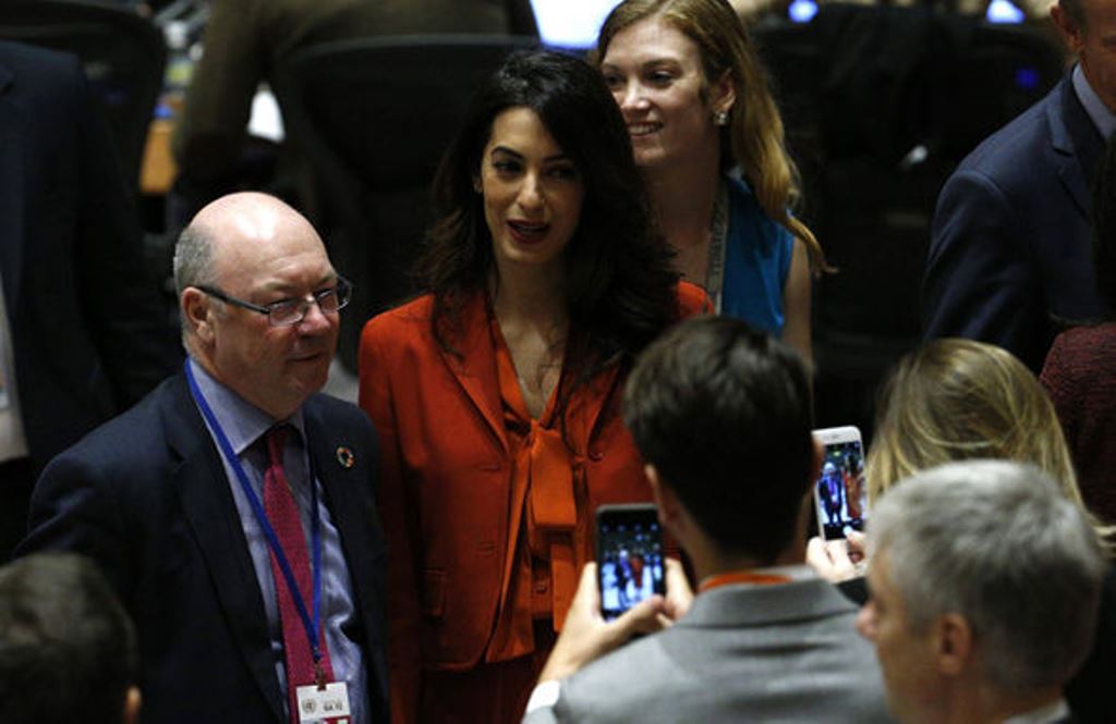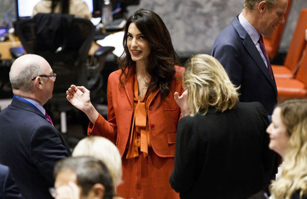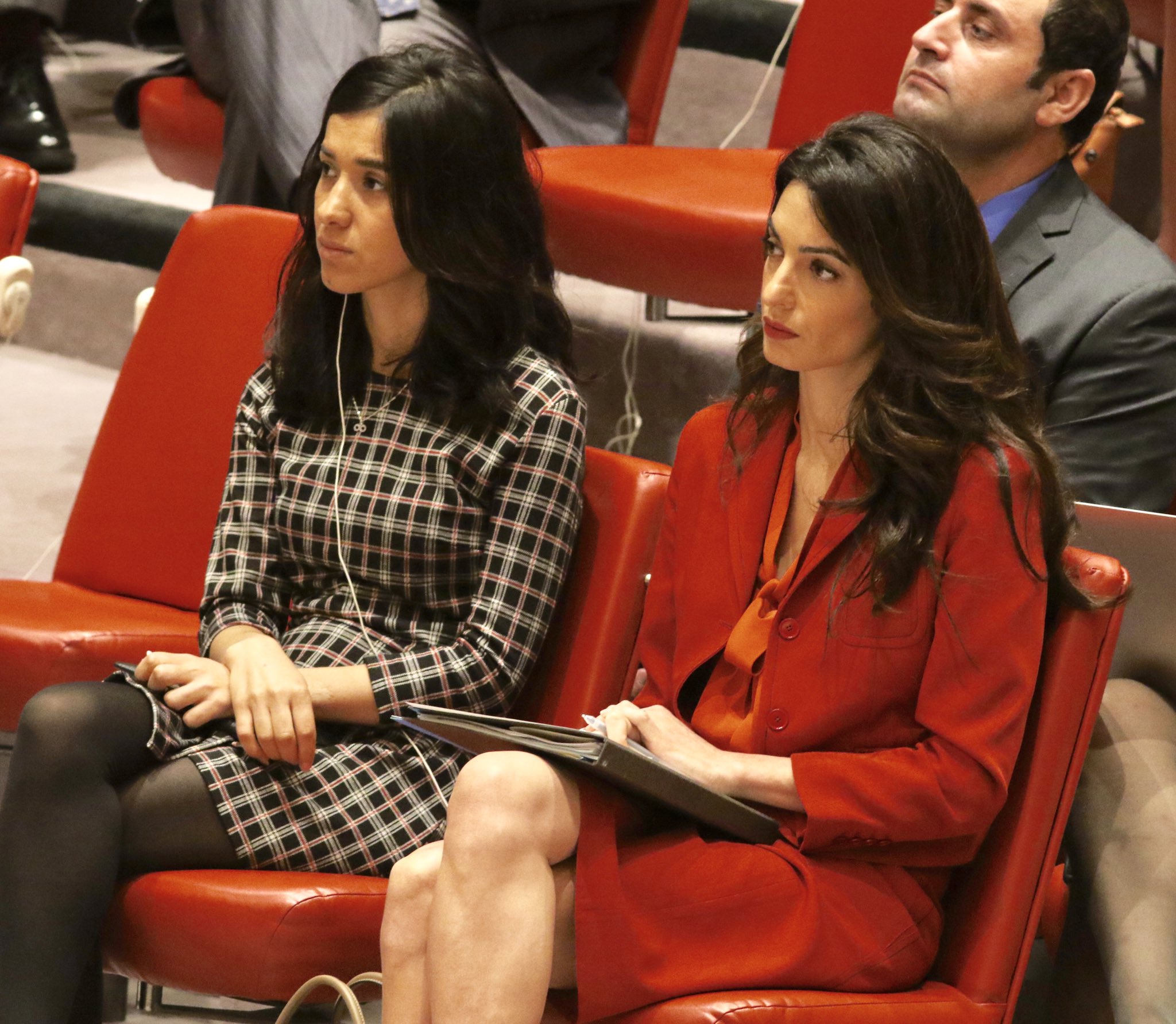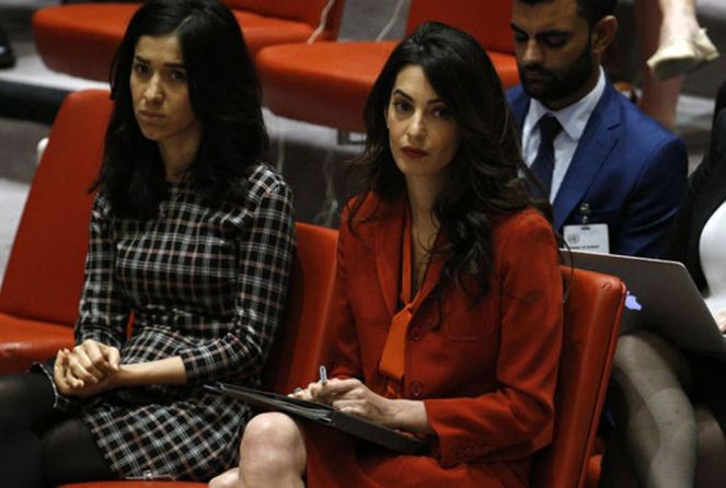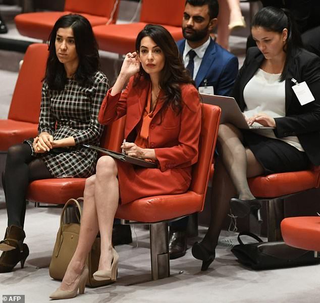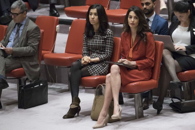 Amal Clooney with Nadia Murad attended the UN Security Council meeting on Thursday as the council voted to investigate ISIS war crimes following her campaign that sought justice for Yazidis and other minorities.