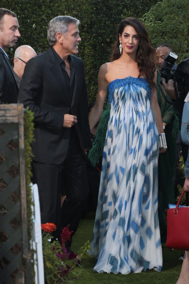 Amal beautiful as always, love the dress!!! DonΒ΄t like her rigid arms, the hunched back and insecure smile; if she is able to fix these problems, she would look even more beautiful.