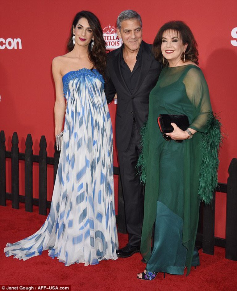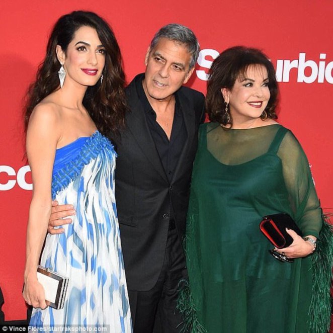 Amal and George Clooney hit the red carpet with Amal’s mother, Baria, at the Regency Village Theater in Westwood, CA.