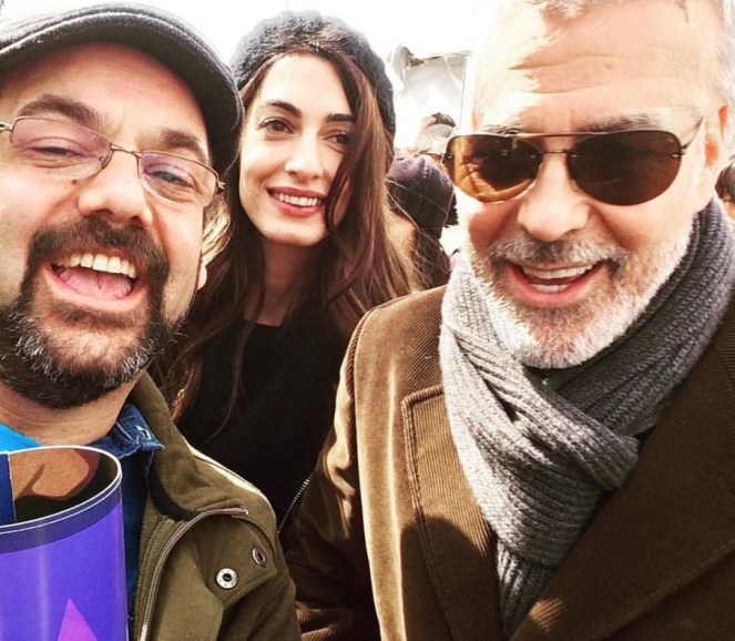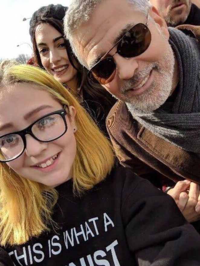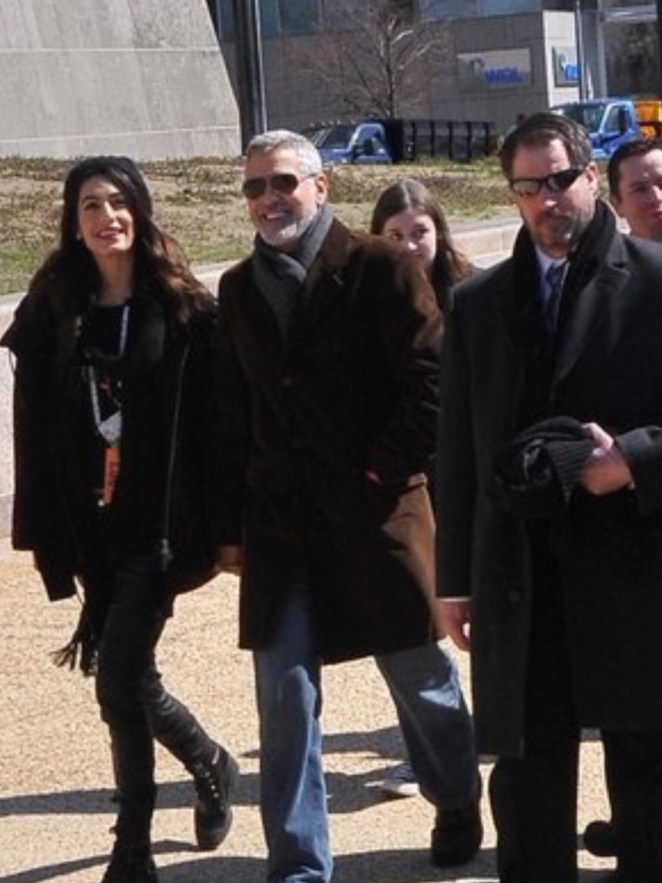 Great to see them at the march..there is a photo in the a Vanity Fair article that shows a big photo of the crowd and you can see George & Amal. You also see his parents…Nina & Nick, sister Ada and Grant & Lysa Heslov. So he did march with family & friends, but no twins…which is good.