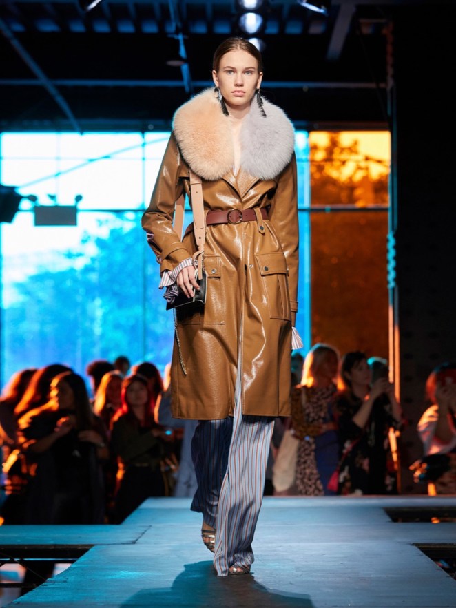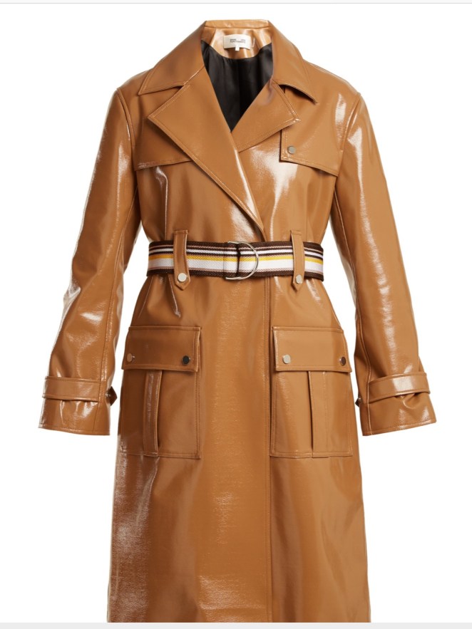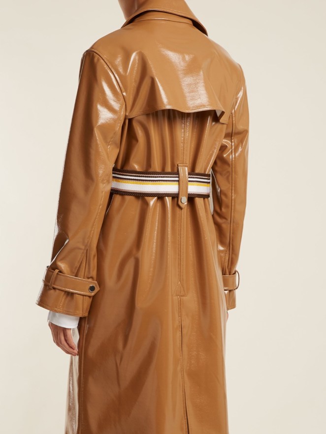 Contrast-belt vinyl trench coat