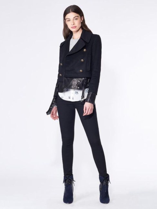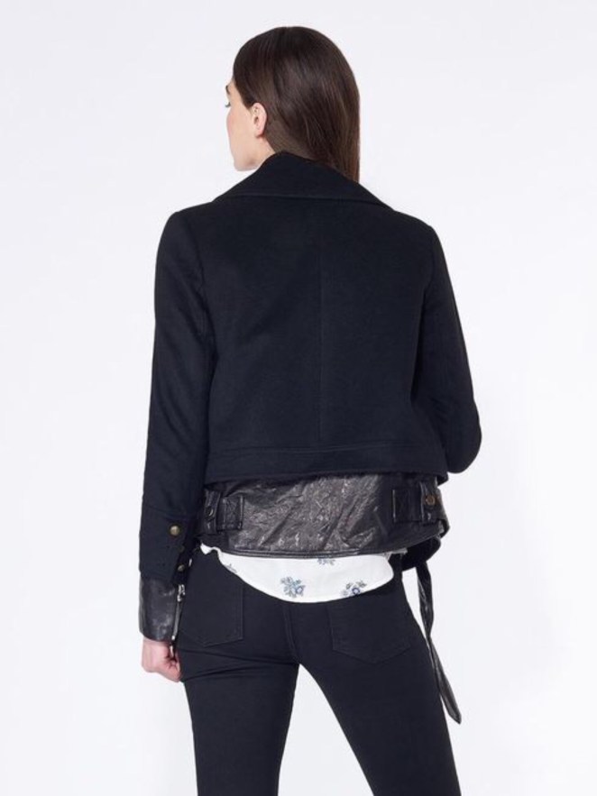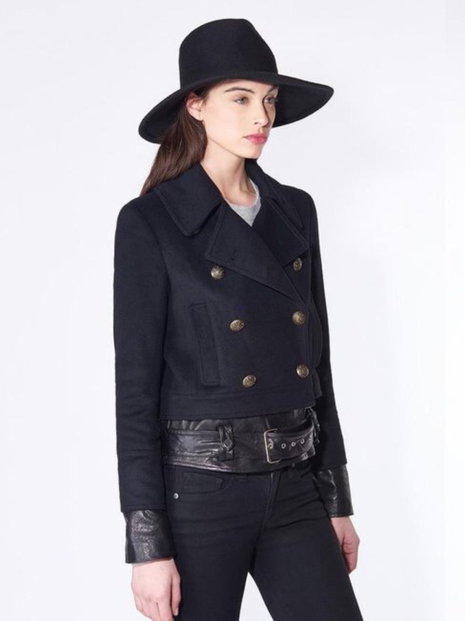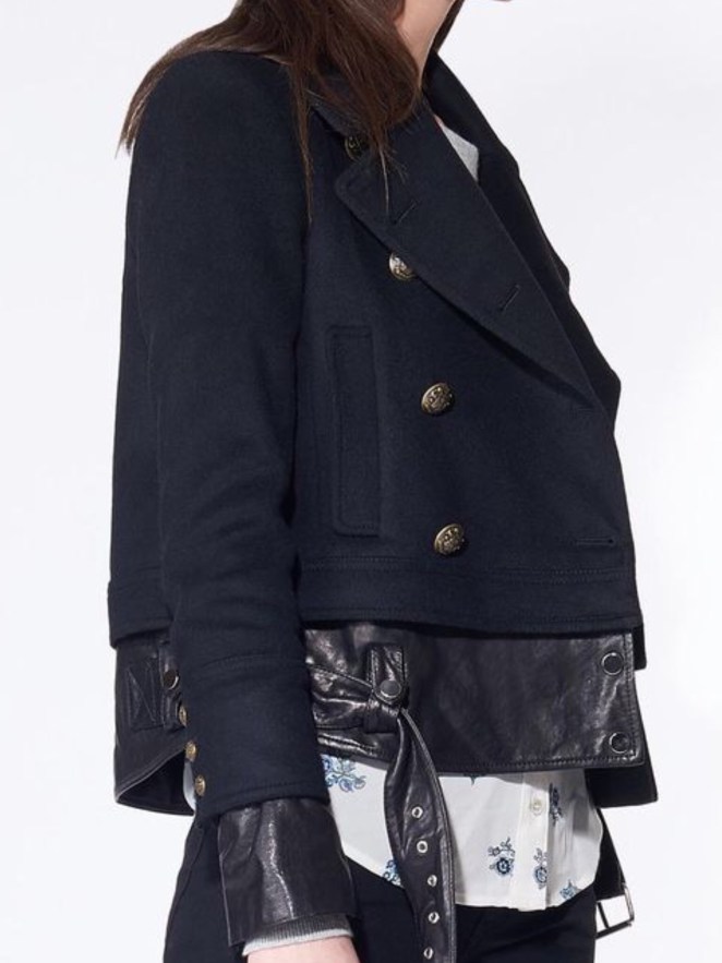 Yara Double-Breasted Pea-Coat Jacket w/ Leather Hem
