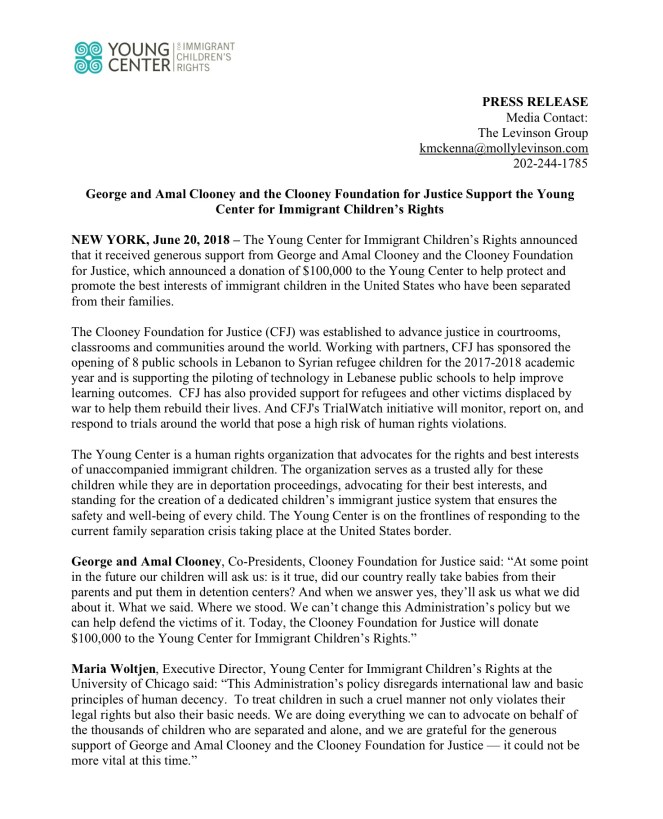 4 thoughts on “George and Amal Clooney support the Young Center for Immigrant Children’s Rights 20.06.2018