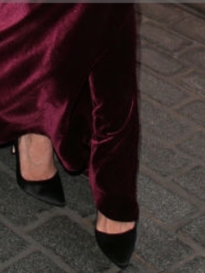 Beautiful color on her. The jewel tone “reds” always look so good on her with her dark hair & dark eyes.
