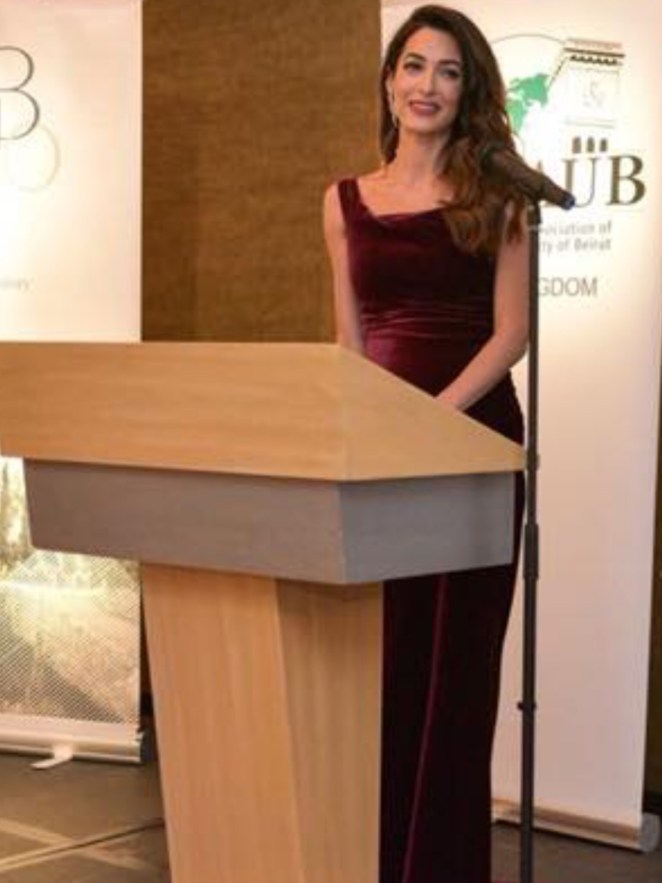 This past weekend, Amal Clooney attended the Worldwide Alumni Association of the American University of Beirut reception in London, giving a speech alongside her father, a former professor at the University.