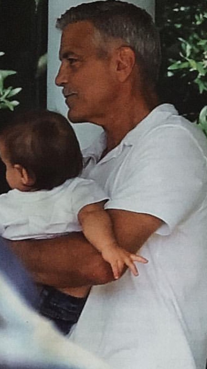 In a season and trend of prints prints prints…I totally love these pants. Fun to see their vacation vibe and so great to see George in some new kicks–Stan Smith Adidas. Note: little Alexander in George’s Levi style jeans. HaHa