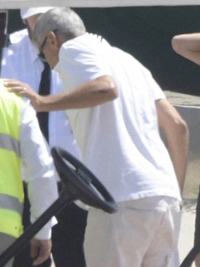 The couple were glued to each other after the ‘Monuments Men’ actor was involved in an accident whilst travelling on his scooter in Sardinia, where he is filming ‘Catch-22’, when a car collided with the scooter.
