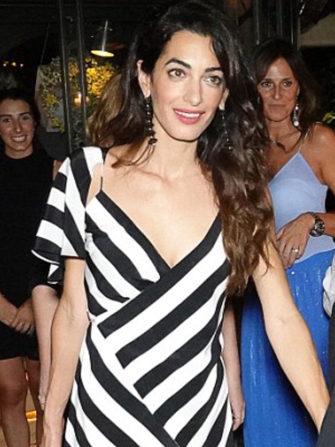 Amal looks “buzzed”! That moment when you are leaving a wonderful dinner and feeling no pain after a couple glasses of wine. 🍷🍷 “Life is Good”