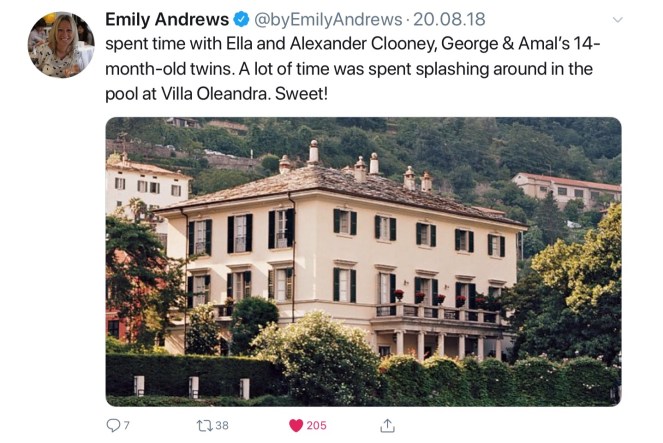 “Clooney actually [flew] them over to Como from London on his private jet and then an unmarked motorcade transported them from the airfield to the home with, of course, their protection officers in tow,” he told ABC.