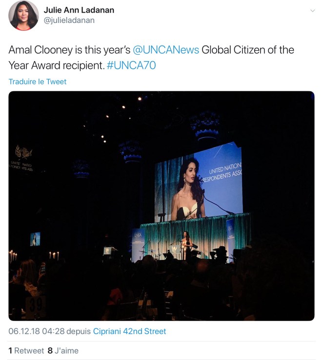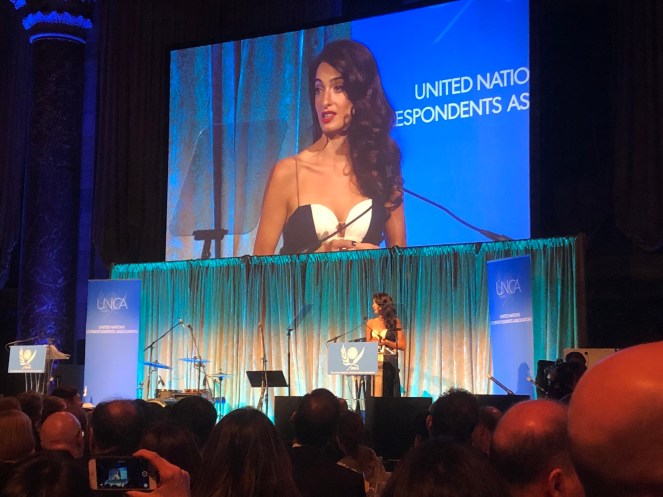 Amal has been involved with the UN since 2013. During the event, she took to the stage to honor the best of UN media coverage in 2018. Per People, she said, “I am here tonight to honor you, the journalists being recognized for your groundbreaking reporting this year.”