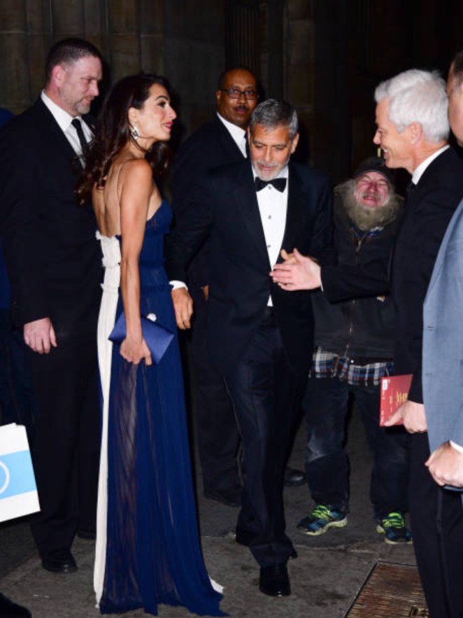 Amal and George Clooney showed up in New York for the 70th Anniversary of the UN Correspondents Association. Amal was there to receive the 2018 UNCA Global Citizen of the Year Award for her humanitarian work, and George there to cheer her on.