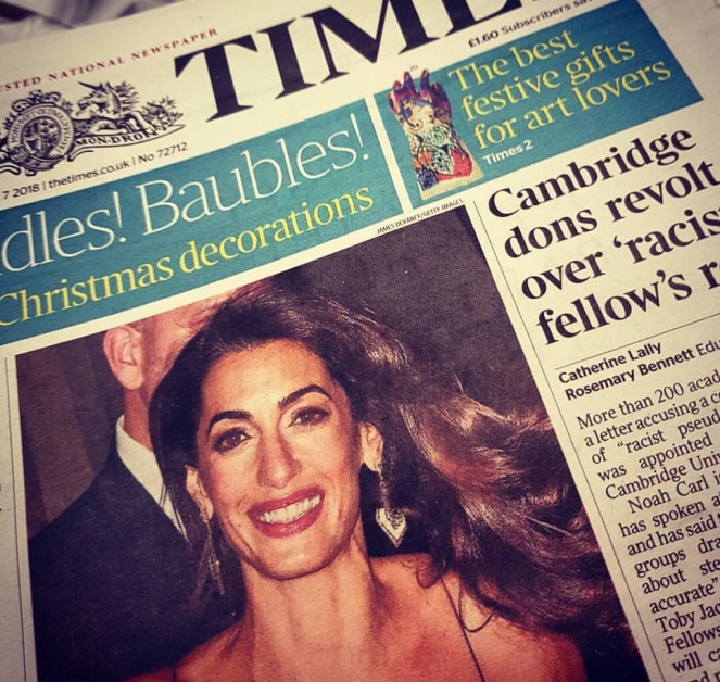 Via surfmamawilma on Instagram – Amal on the cover of The TIMES UK