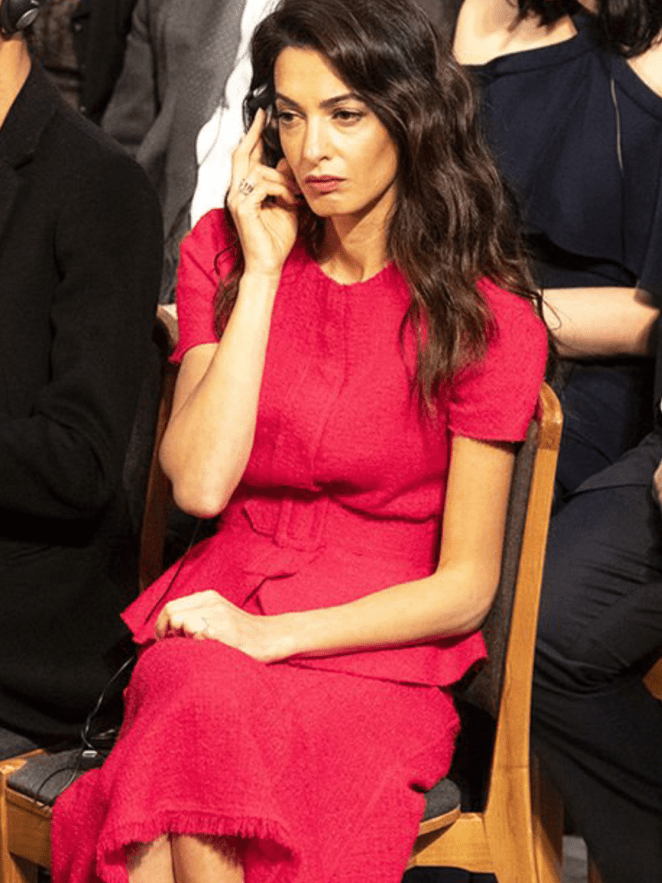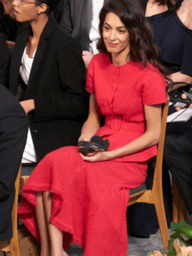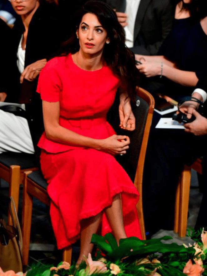 Amal has always worn red, even before she met George she was often in red. I don’t care for this dress. The fit isn’t attractive neither on Amal nor on the model. However, I love red too and wear a lot of it. Even though red is often an attention grabber, I never really think of seeking attention when I wear it. While Amal loves attention. I don’t think she’s wearing red for this purpose. She just naturally loves the color red and it does suit her.