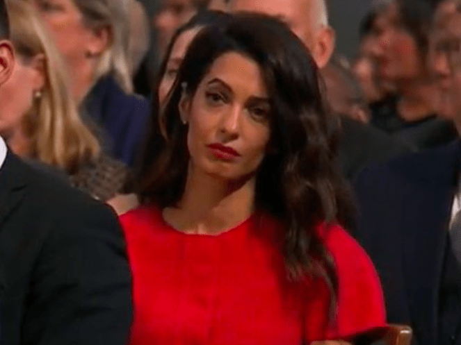 Everyone was wearing dark neutral colors except Amal of course. She just can’t help it. And while she’s at it, taking so much care of her good looks, she should get an Invisalign treatment for her teeth.