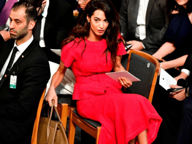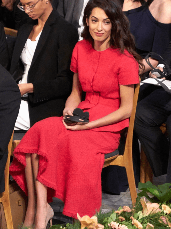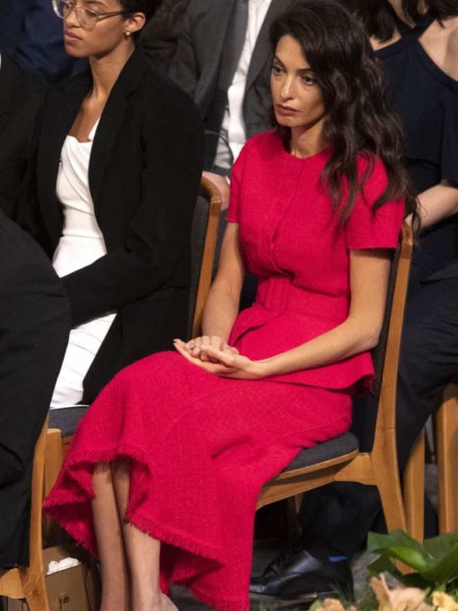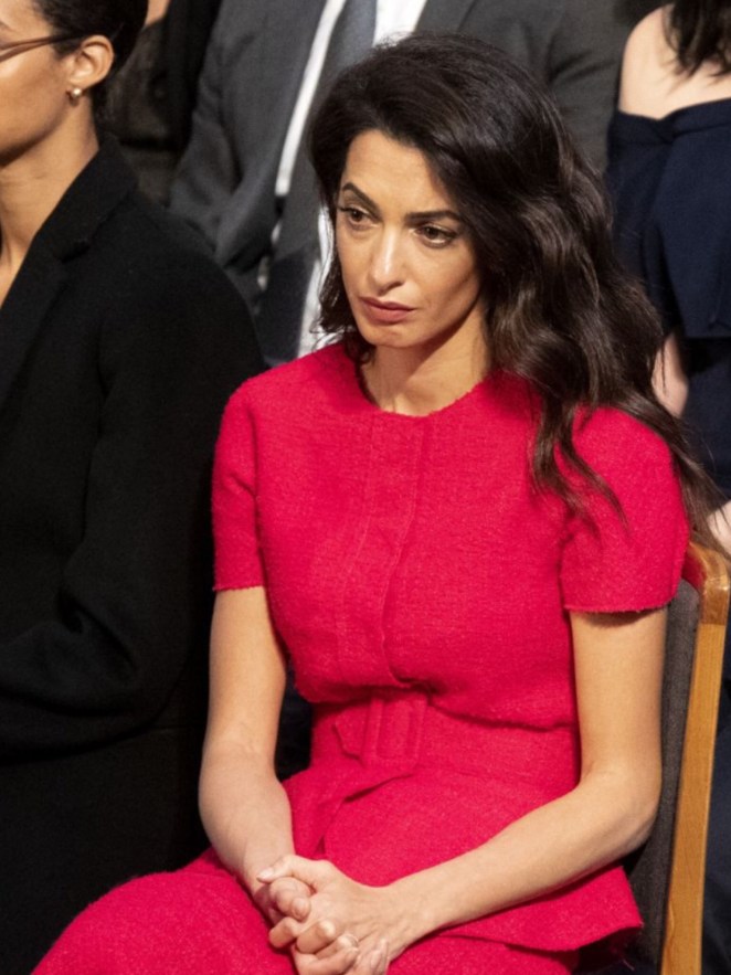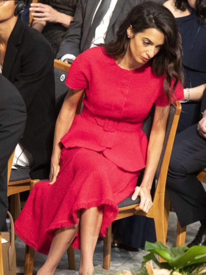 agree, why does amal feel the need to always upstage people with her bright/loud clothing? If you look at the pictures most people were dressed in black/white/navy but there’s amal in siren red! ugh.