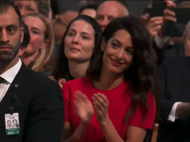 Amal Clooney has taken her seat for the Nobel Peace Prize ceremony 2018.