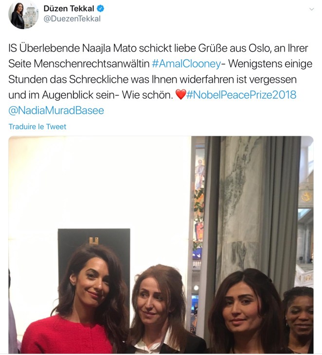 Amal has shown her support for Nobel Peace Prize winner and human rights activist Nadia Murad.
