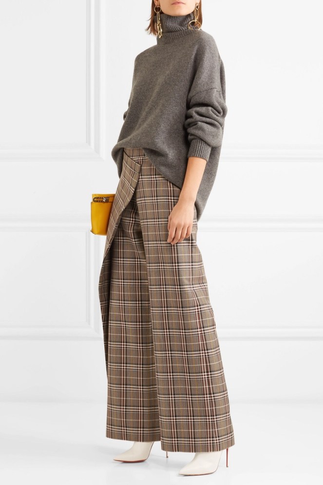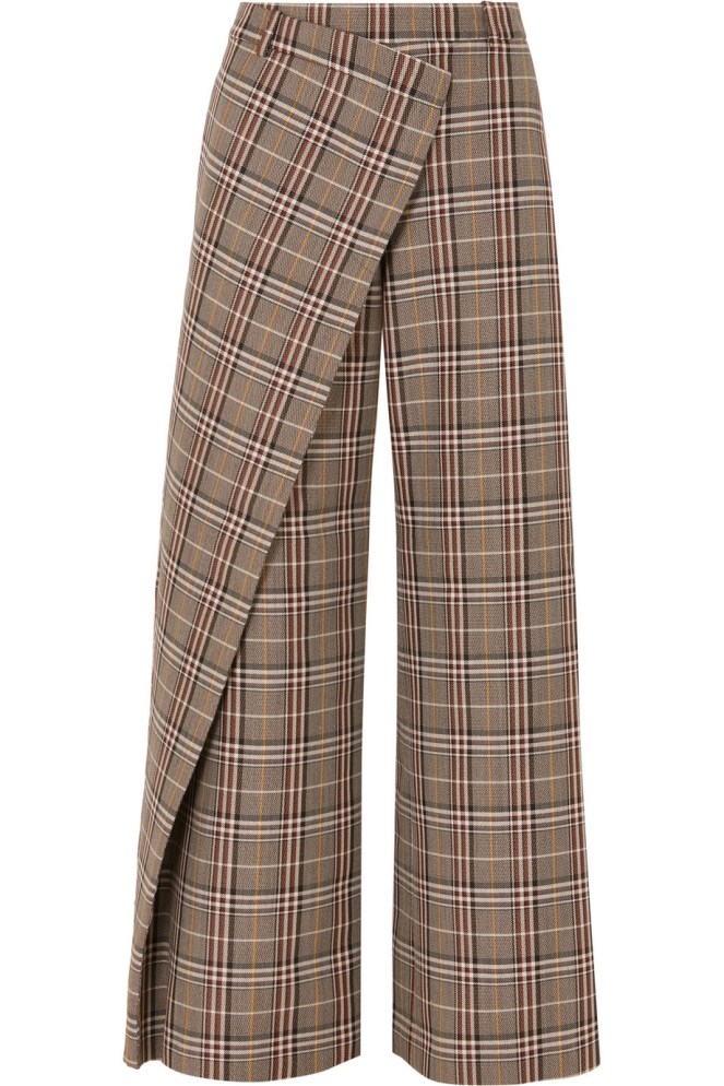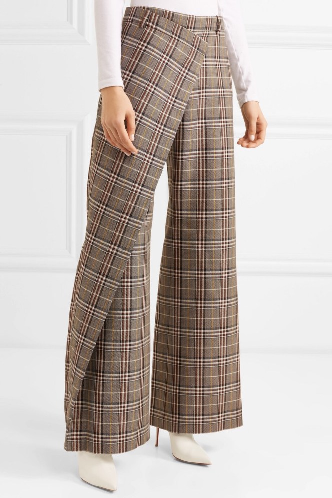 Wrap-effect checked wool-blend canvas wide-leg pants