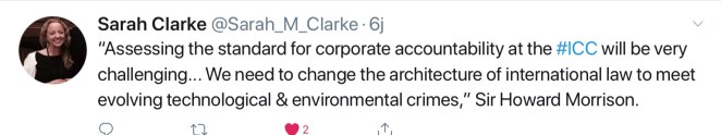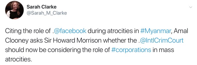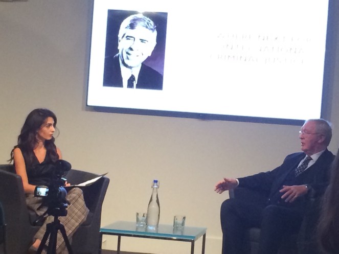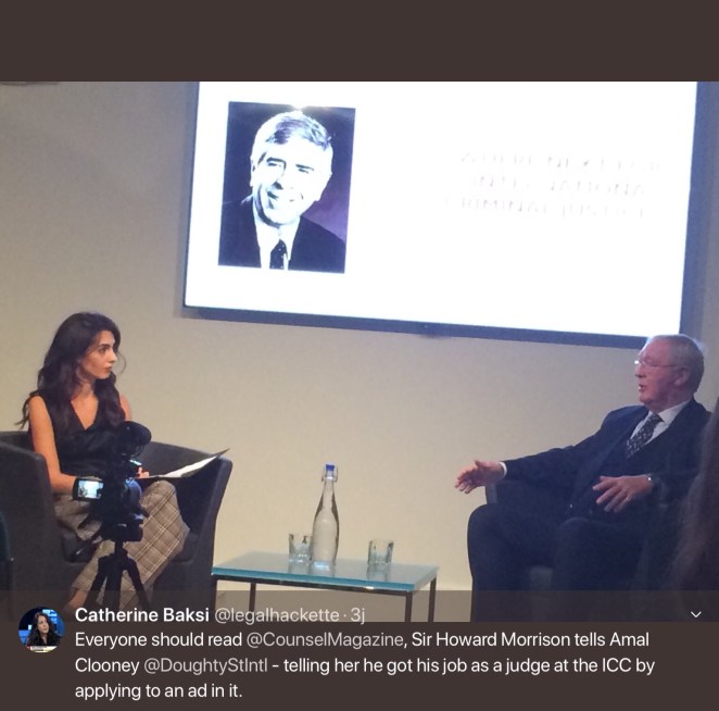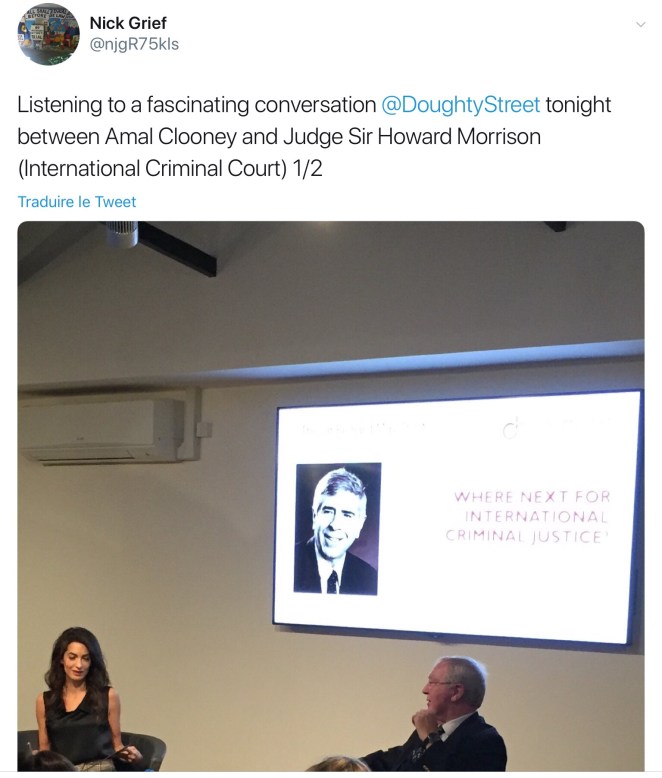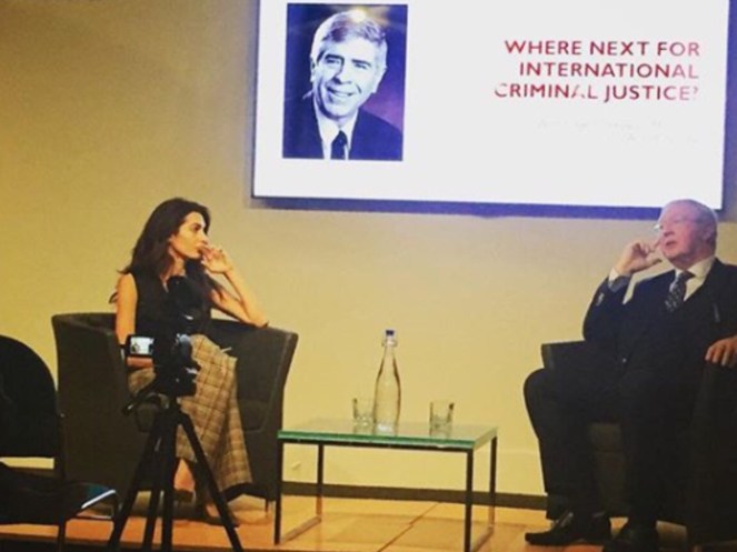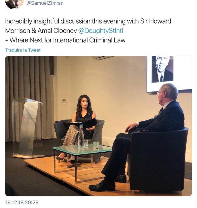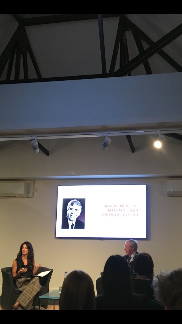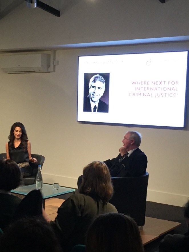 Amal Clooney discussed “where next for international criminal justice?” with Judge Sir Howard Morrison for a Doughty Street event in London on December 18th, 2018.