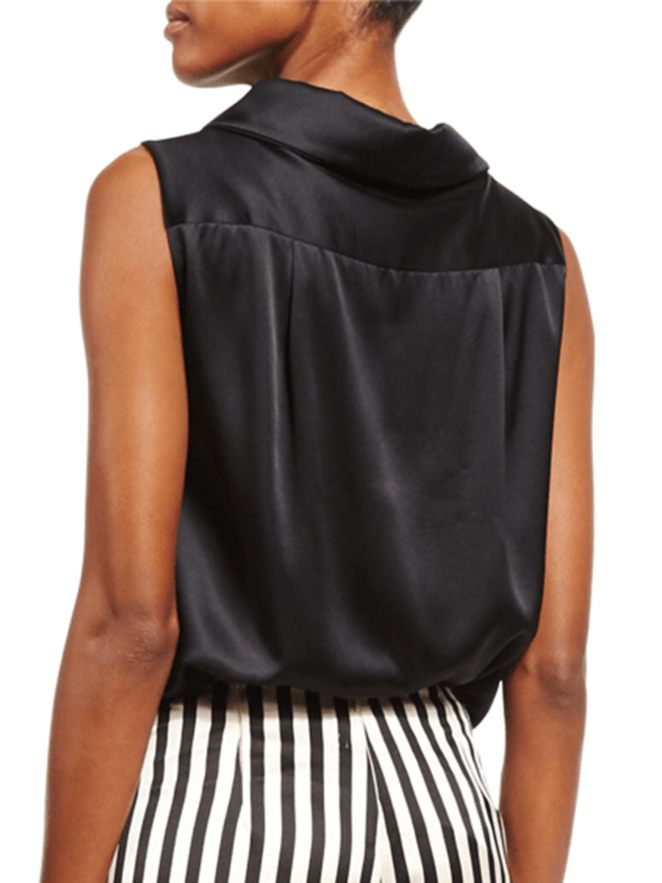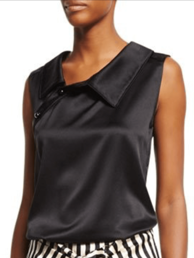 Sleeveless Silk Asymmetric-Neck Top, Black
