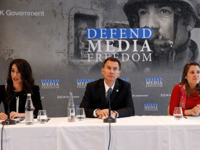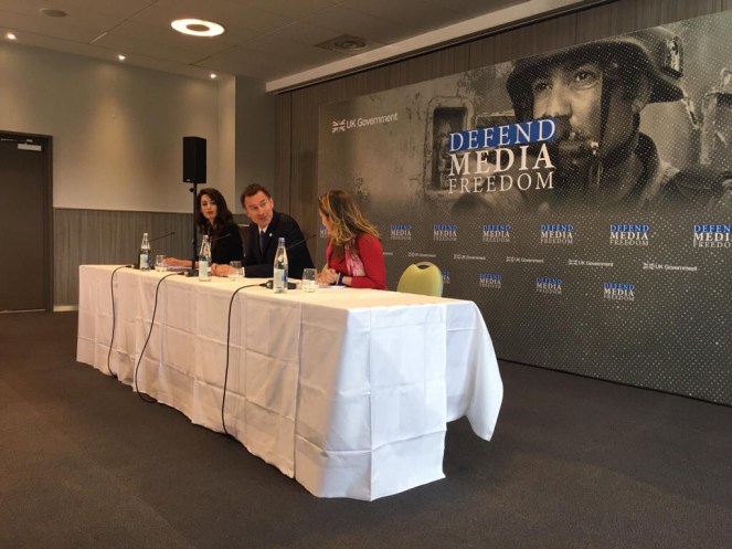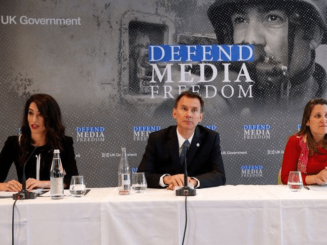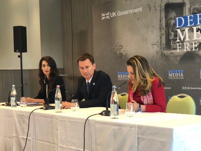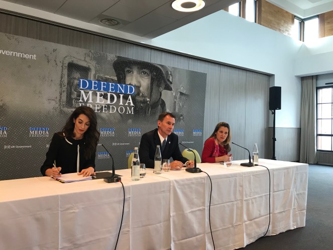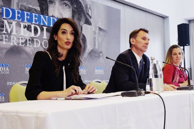After a meeting with the Canadian Foreign Minister and Amal Clooney at a G7 event in France, Mr Hunt set out the next stages of the UK’s campaign to defend free media around the world.