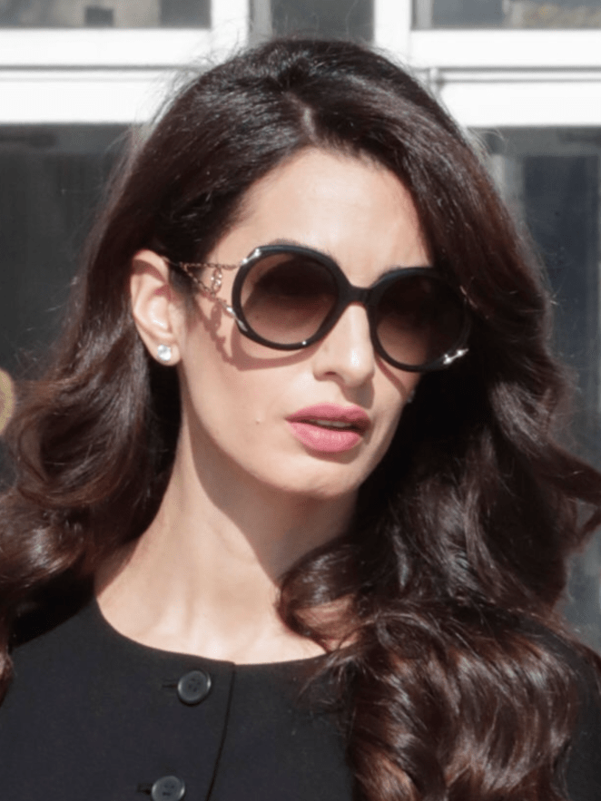 Even will billions of dollars, she still insists on planting sunglasses in her extensions. She’s been doing this pre-George. It’s tacky and not chic, just put them back into your purse or hold them.