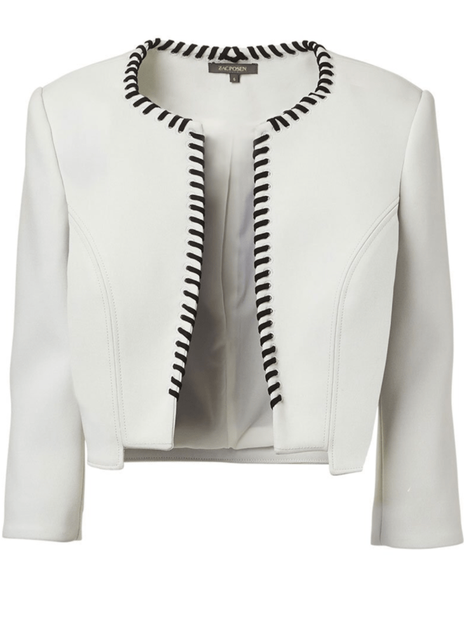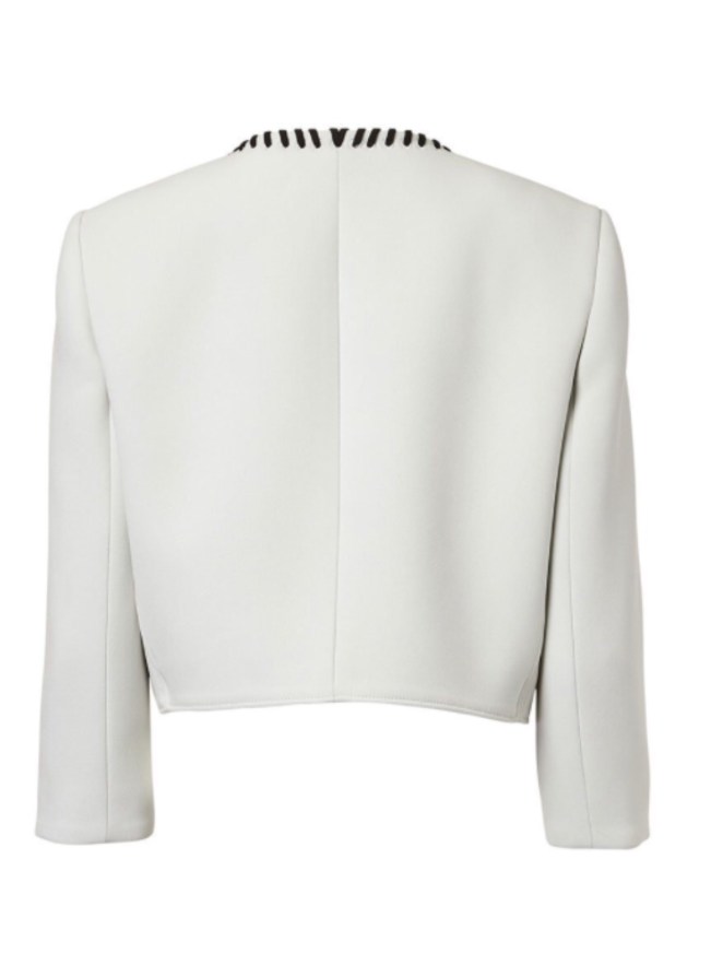 Cropped white jacket, here with black trim