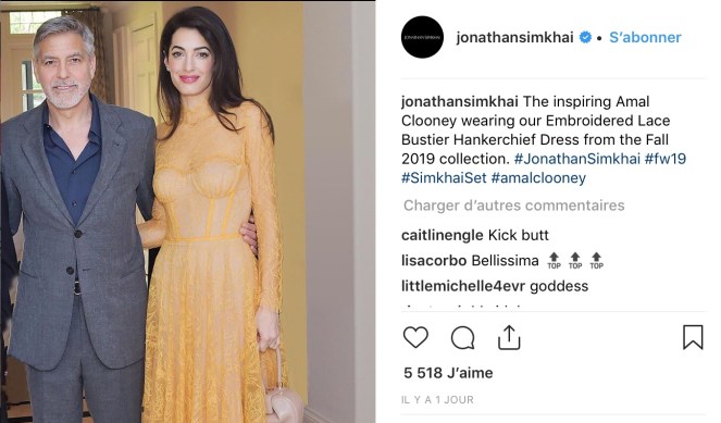Amal Clooney wore a lace corset dress by y JONATHAN SIMKHAI