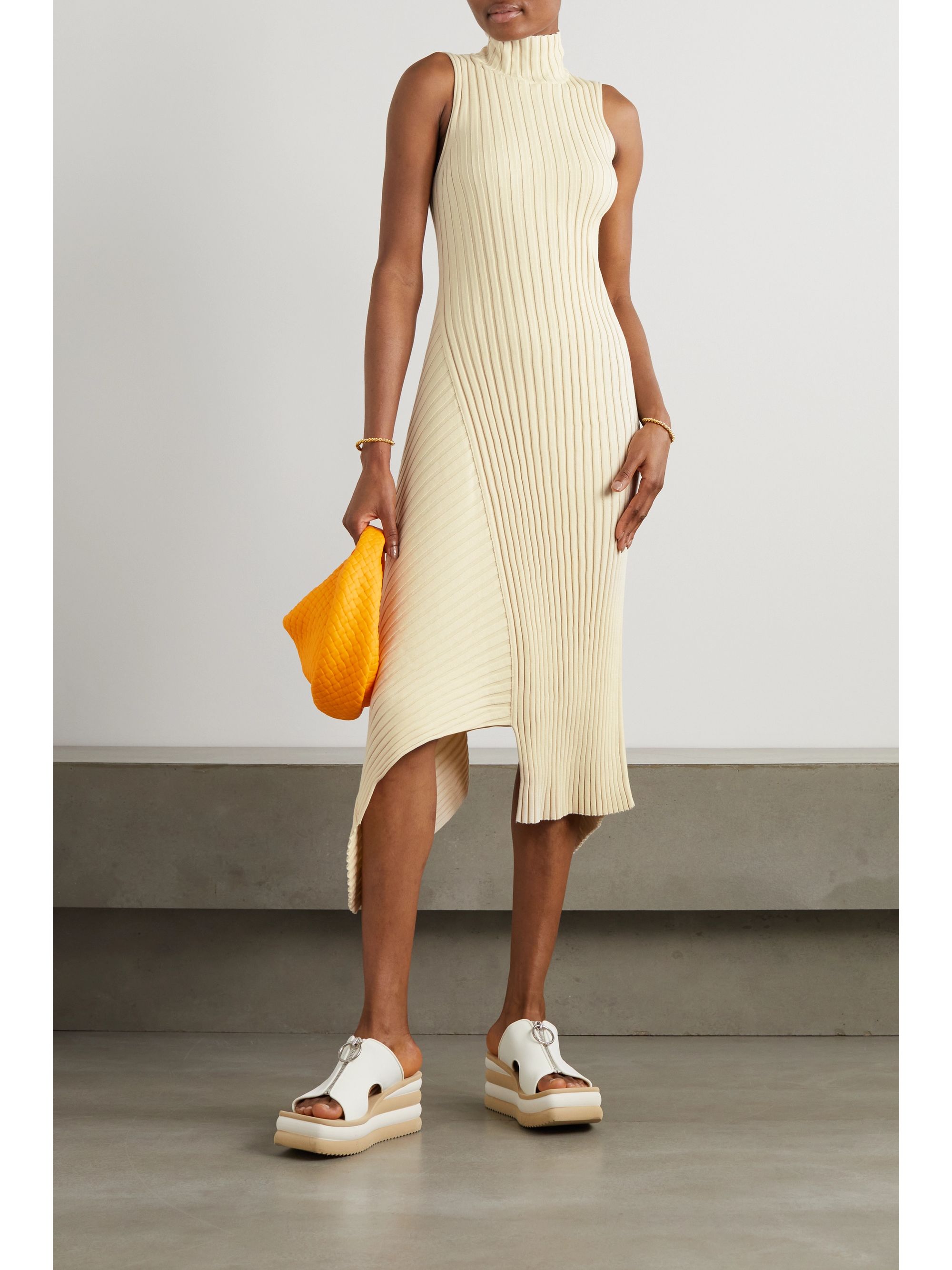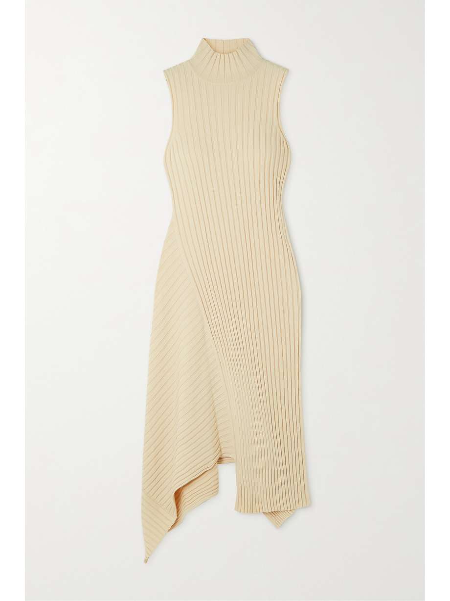 Asymmetric ribbed organic cotton turtleneck dress